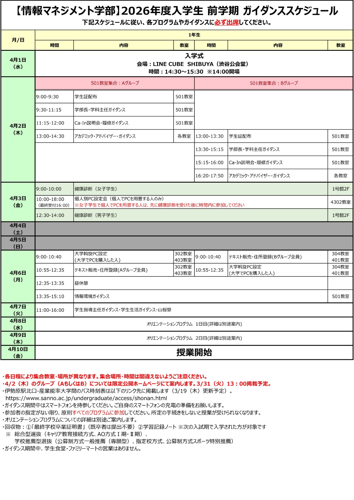 2026年度 ガイダンススケジュールについて、以下にお知らせします。