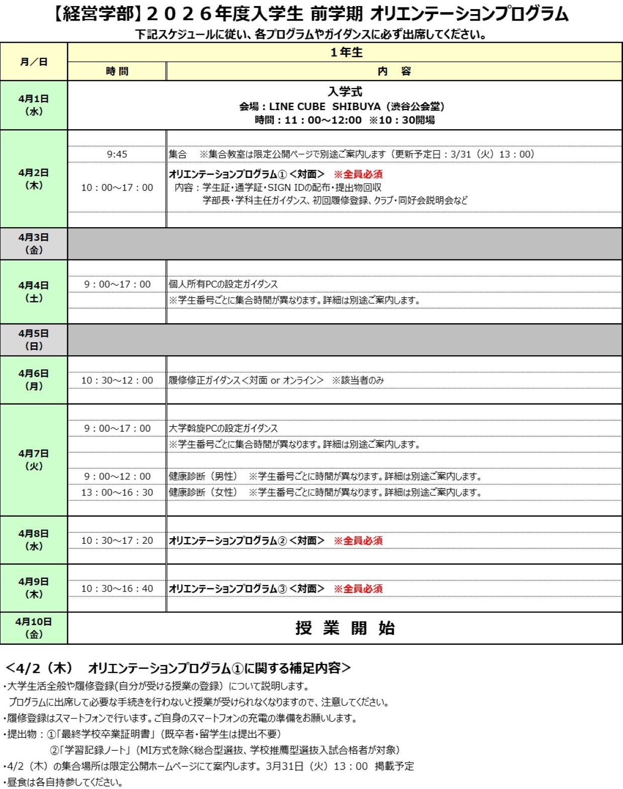 2026年度新入生ガイダンスについて