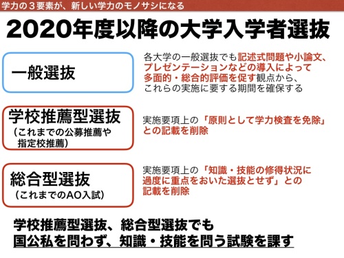 「学力だけ」と「学力以外」の2択に近かった従来の入試方式とは違い、あらゆる方式で学力の3要素が測られることになります。