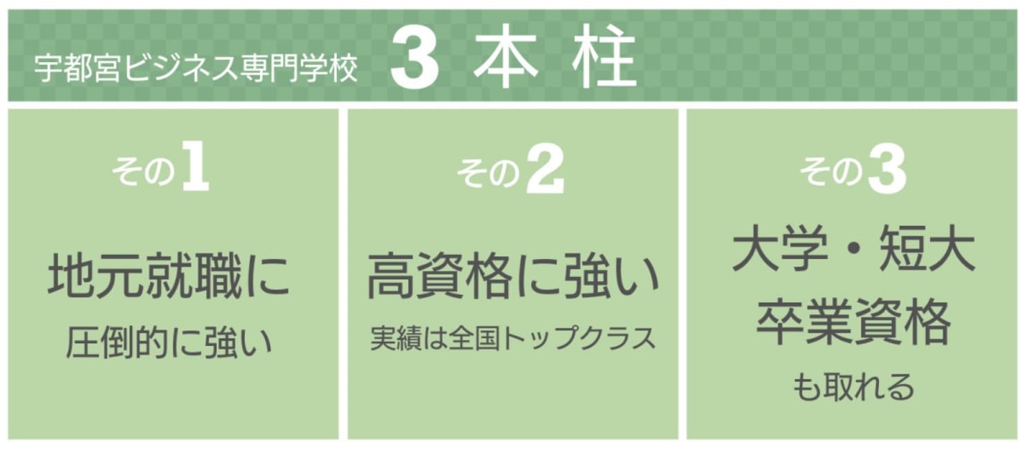 1984年創立の栃木県宇都宮市にある専門学校。情報処理・ゲーム・Web・公務員・医療事務・税理士・保育・販売など、9学科30コースを設置し、国家資格取得と地元就職、公務員試験合格に強みをもつ。大学併修制度を導入しており、専門スキルと学士の同時取得による即戦力人材を育成する教育を行っている。