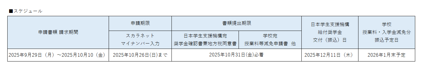 令和7年度日本学生支援機構 給付奨学金の新規秋採用について
