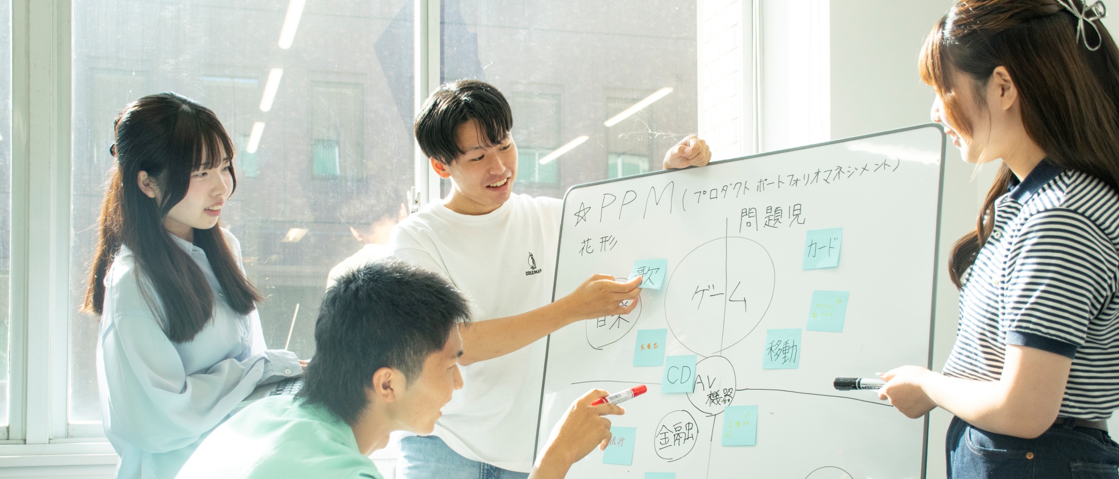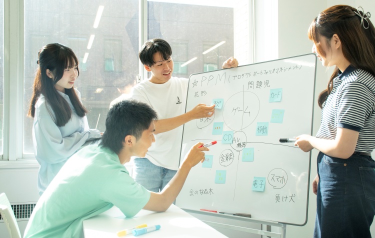顧客ニーズを的確に把握し、新商品の企画や市場開発に必要なマーケティングについて、分析手法や戦略、消費者行動、ブランディング、市場動向、流通など、多岐にわたり演習を通して実践的に学びます。