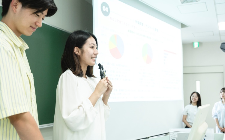 経験豊富な実務家教員や各業界で活躍するゲスト講師からビジネスのリアルを聴き、社会人になった自分を想像します。マーケティングの知識と考え方が、社会で活きることを実感する。いま学んでいることは、必ず未来につながっている。そう思えることが学びのモチベーションとなります。