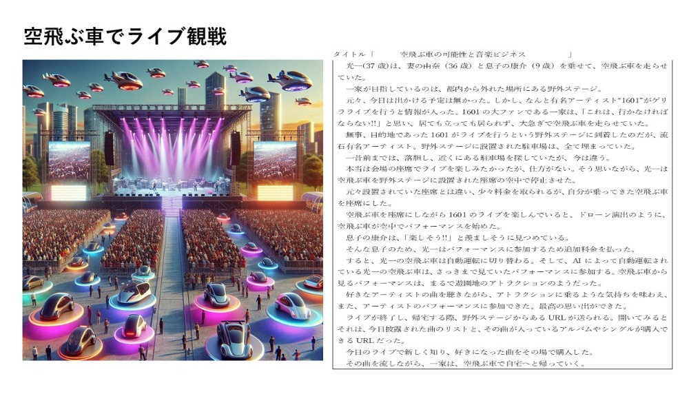 未来に向けての新たな価値提案について考えます。チーム活動で行った業界の未来洞察に基づき、新しいビジネスモデルやサービス提案を個人で行います。一人ひとりが独自の視点で価値創造に取り組む能力を高めることを目的としています。発表は短時間で相手を説得するためのピッチについて学び、作成します。